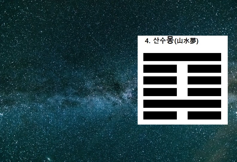 몽괘(蒙卦)는 주역(I Ching)의 네 번째 괘로, 무지(無知)와 혼란에서 벗어나 배우고 성장하는 과정을 상징합니다. 몽괘는 산(艮)과 물(坎)이 결합된 괘로, 산이 물 위에 위치해 있어 물이 가득 차오르지만 흐르지 못하는 상태를 표현합니다. 이로 인해 물이 탁해지고 혼란스러운 상태를 나타내며, 이는 삶의 초기에 지식과 경험이 부족해 길을 찾기 어려운 상황을 상징합니다.