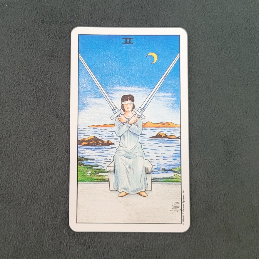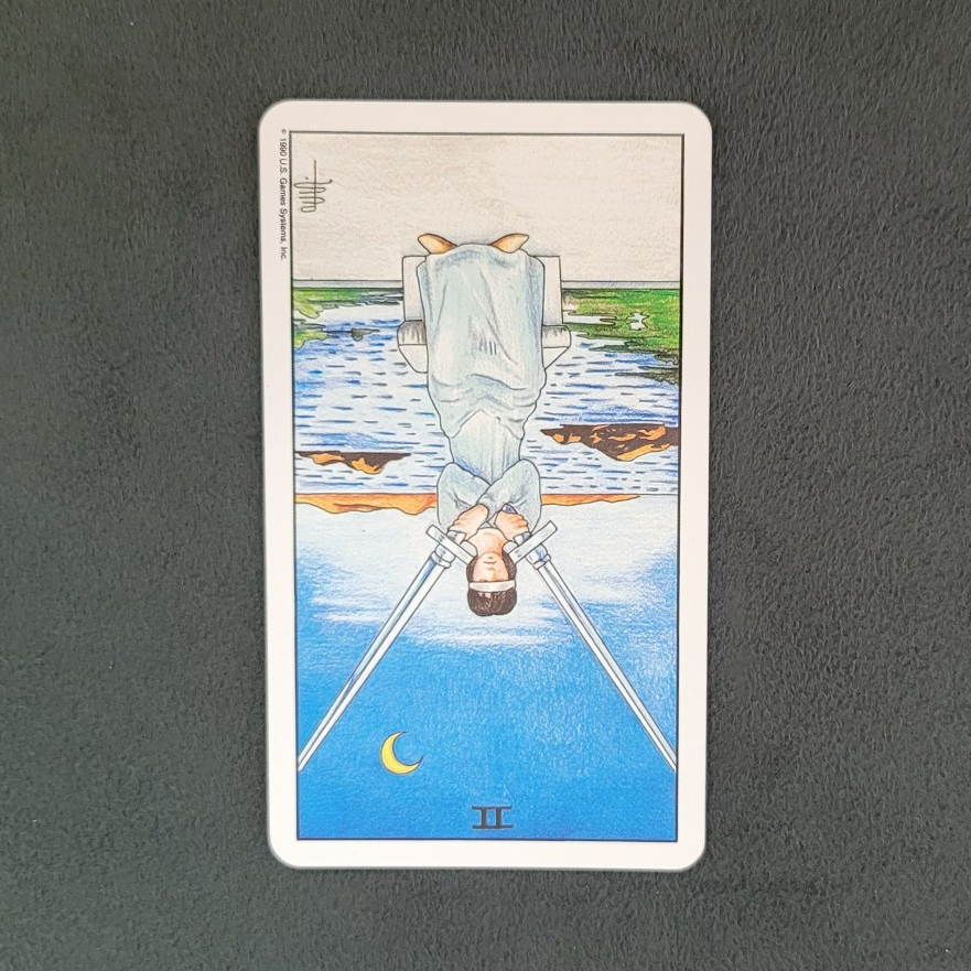 검 2번 카드가 정방향으로 나왔다면, 당신이 선택의 기로에 놓여 있으며, 어떤 결정도 내리지 못하고 있음을 나타냅니다.