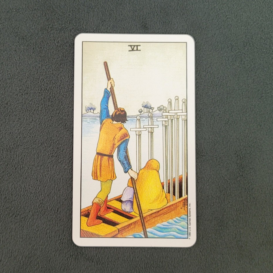 검 6번 카드가 정방향으로 나왔다면, 당신의 삶에 긍정적인 변화가 찾아오고 있음을 나타냅니다.