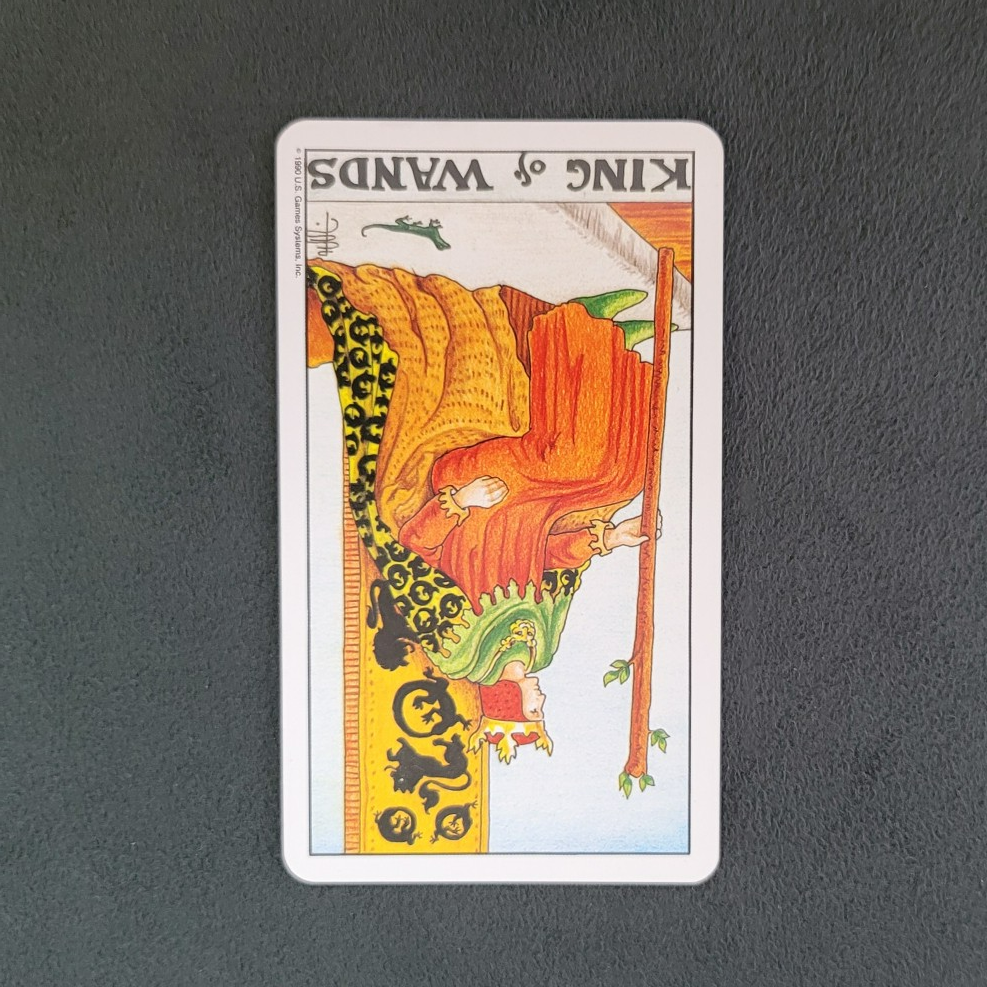 지팡이 왕 카드가 역방향으로 나왔다면, 겉으로만 완벽해 보일 뿐 독재적이고 무능한 리더의 모습을 보일 수 있습니다.