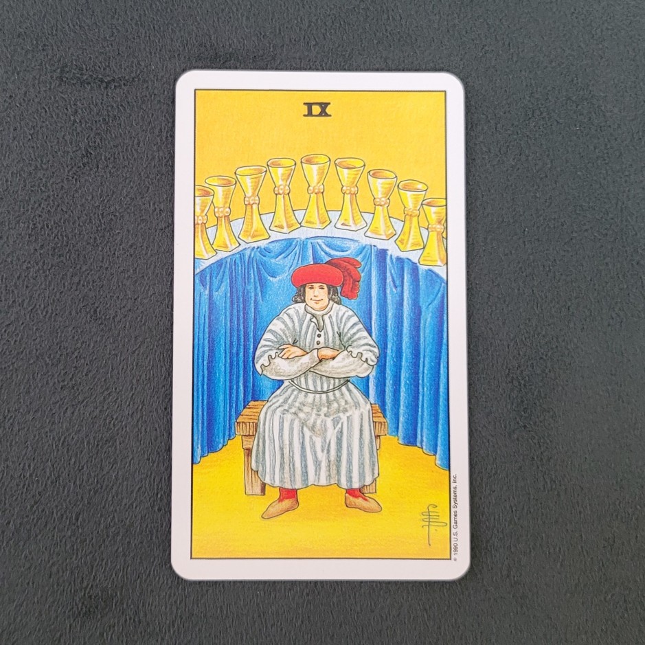 컵 9번(Nine of Cups) 카드의 한 줄 요약