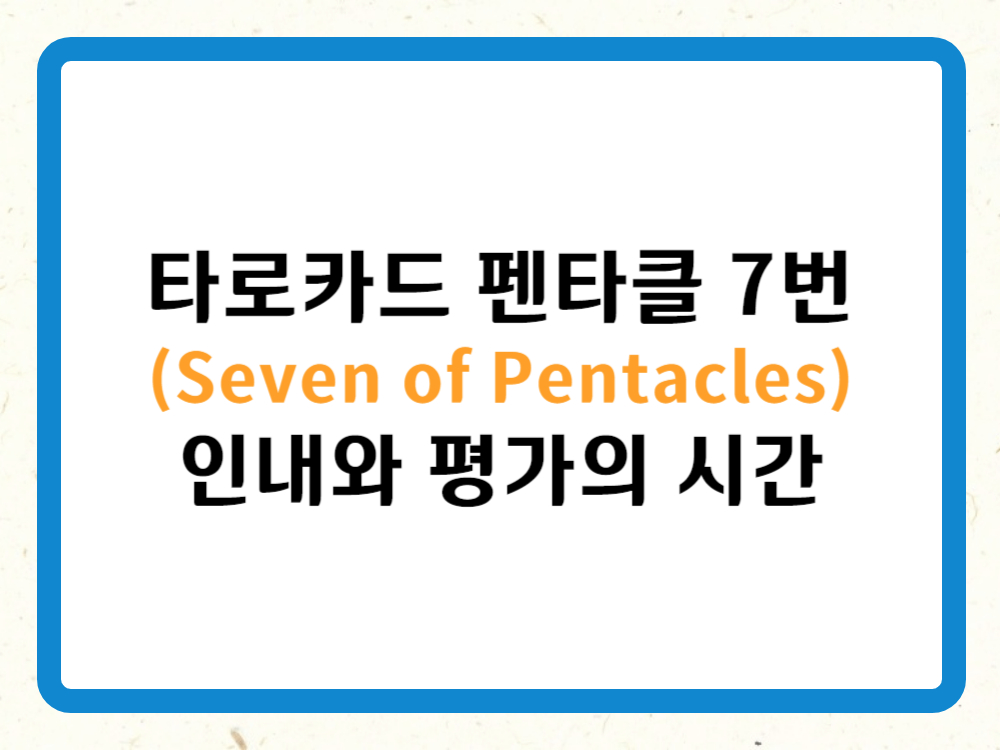 그동안의 노력을 평가하고 있나요? 펜타클 7번 카드가 의미하는 인내, 평가, 그리고 방향성에 대한 고민을 통해 여러분의 삶에 찾아온 결실을 확인해 보세요.