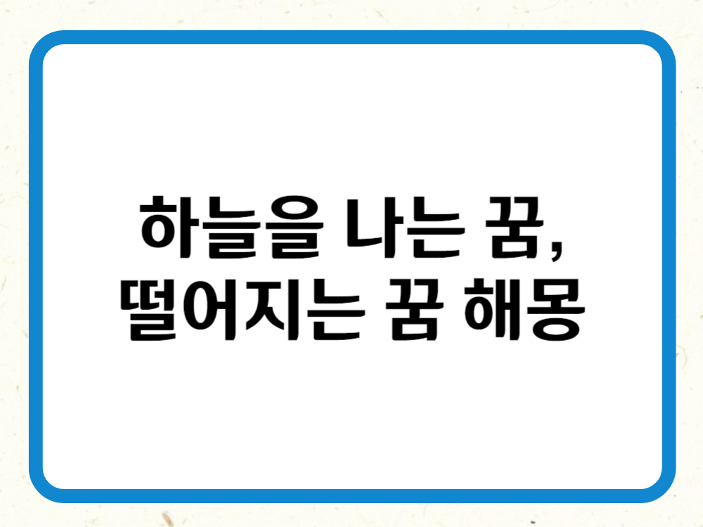 - 하늘을 날다가 떨어지는 꿈: 일시적인 좌절이나 실패를 경험하게 될 수 있지만, 다시 일어서서 재기할 수 있음을 나타냅니다.